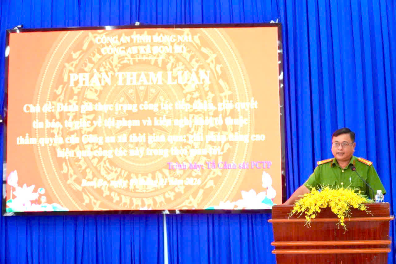 Hội nghị diễn ra nghiêm túc, đúng nội dung, chương trình, thể hiện quyết tâm của lực lượng Công an xã Bom Bo trong việc phấn đấu hoàn thành xuất sắc nhiệm vụ bảo đảm an ninh trật tự năm 2026 và những năm tiếp theo.