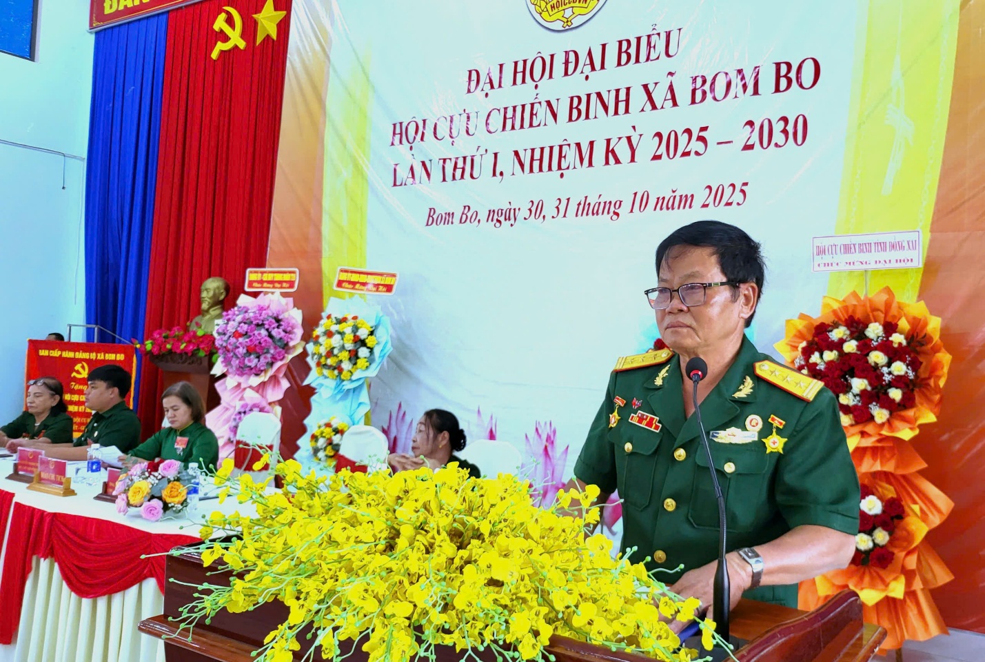 Phát biểu chỉ đạo tại Đại hội, ông Lê Xuân Hải – Ủy viên Ban Chấp hành Hội Cựu chiến binh tỉnh biểu dương những kết quả đạt được của Hội Cựu chiến binh xã Bom Bo trong thời gian qua. Đồng chí nhấn mạnh, Hội cần tiếp tục phát huy tinh thần đoàn kết, nêu cao vai trò tiên phong, gương mẫu của người cựu chiến binh trong đời sống xã hội, tích cực tham gia xây dựng hệ thống chính trị ở cơ sở, đồng thời đẩy mạnh các hoạt động nghĩa tình đồng đội, hỗ trợ nhau phát triển kinh tế, giảm nghèo bền vững.