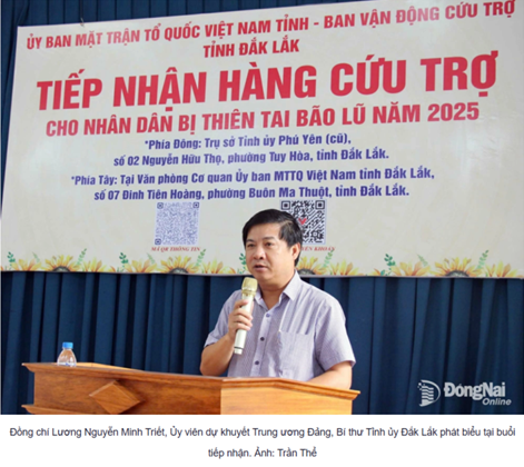 Thay mặt lãnh đạo tỉnh Đắk Lắk, đồng chí Lương Nguyễn Minh Triết, Ủy viên dự khuyết Trung ương Đảng, Bí thư Tỉnh ủy Đắk Lắk trân trọng cảm ơn sự quan tâm, hỗ trợ kịp thời của tỉnh Đồng Nai. Đồng thời khẳng định đây không chỉ là nguồn lực vật chất quý báu mà còn là nguồn động viên tinh thần to lớn đối với Đảng bộ, chính quyền và nhân dân tỉnh trong công tác khắc phục hậu quả mưa lũ, chăm lo đời sống cho người dân.