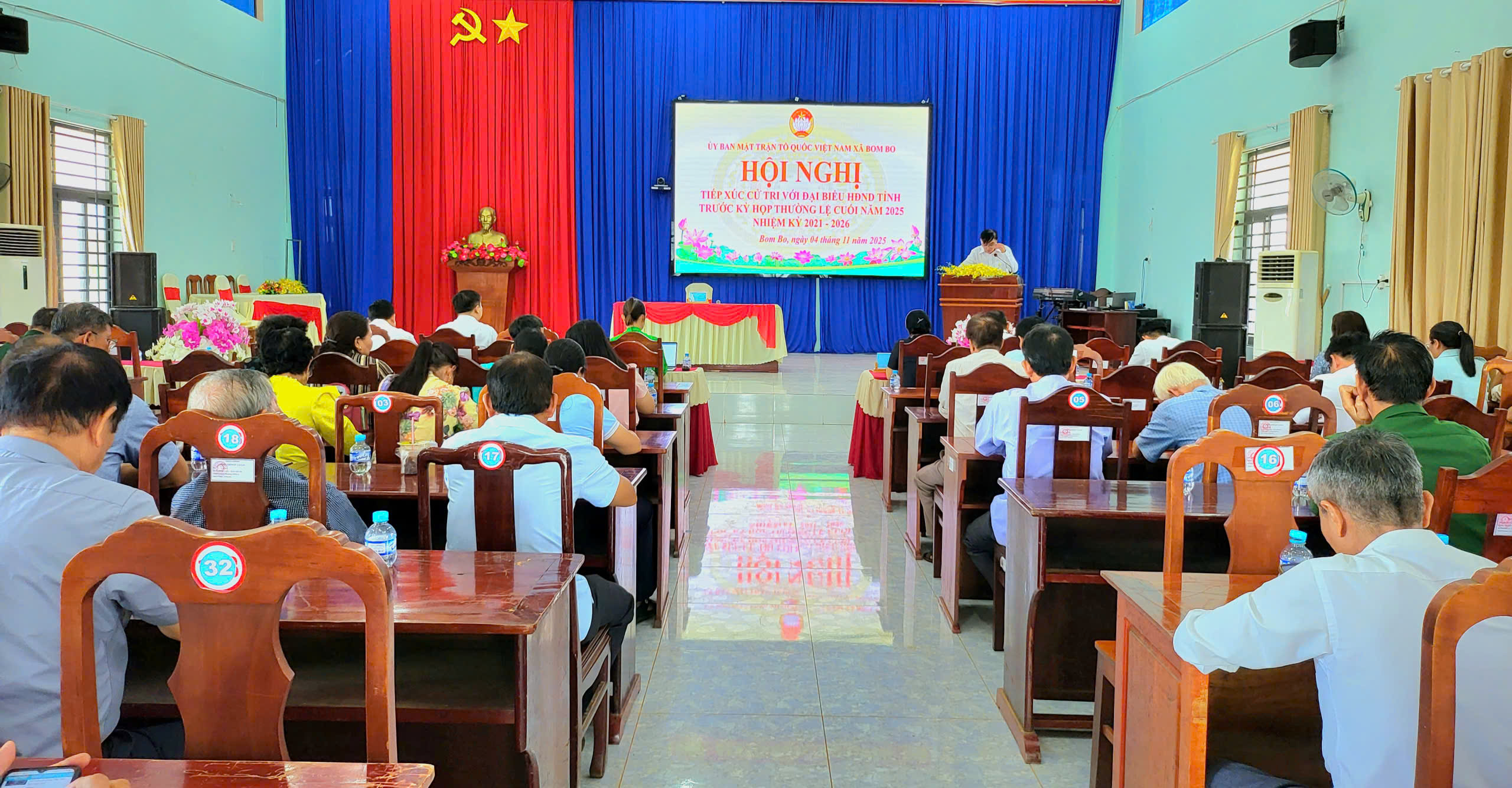 Hội nghị tiếp xúc cử tri với đại biểu HĐND tỉnh tại xã Bom Bo đã diễn ra thành công tốt đẹp, thể hiện rõ tinh thần dân chủ, gần dân, lắng nghe dân và vì dân, góp phần tăng cường mối quan hệ gắn bó giữa đại biểu dân cử với nhân dân, củng cố niềm tin của cử tri vào sự lãnh đạo của Đảng, chính quyền và hệ thống chính trị địa phương.