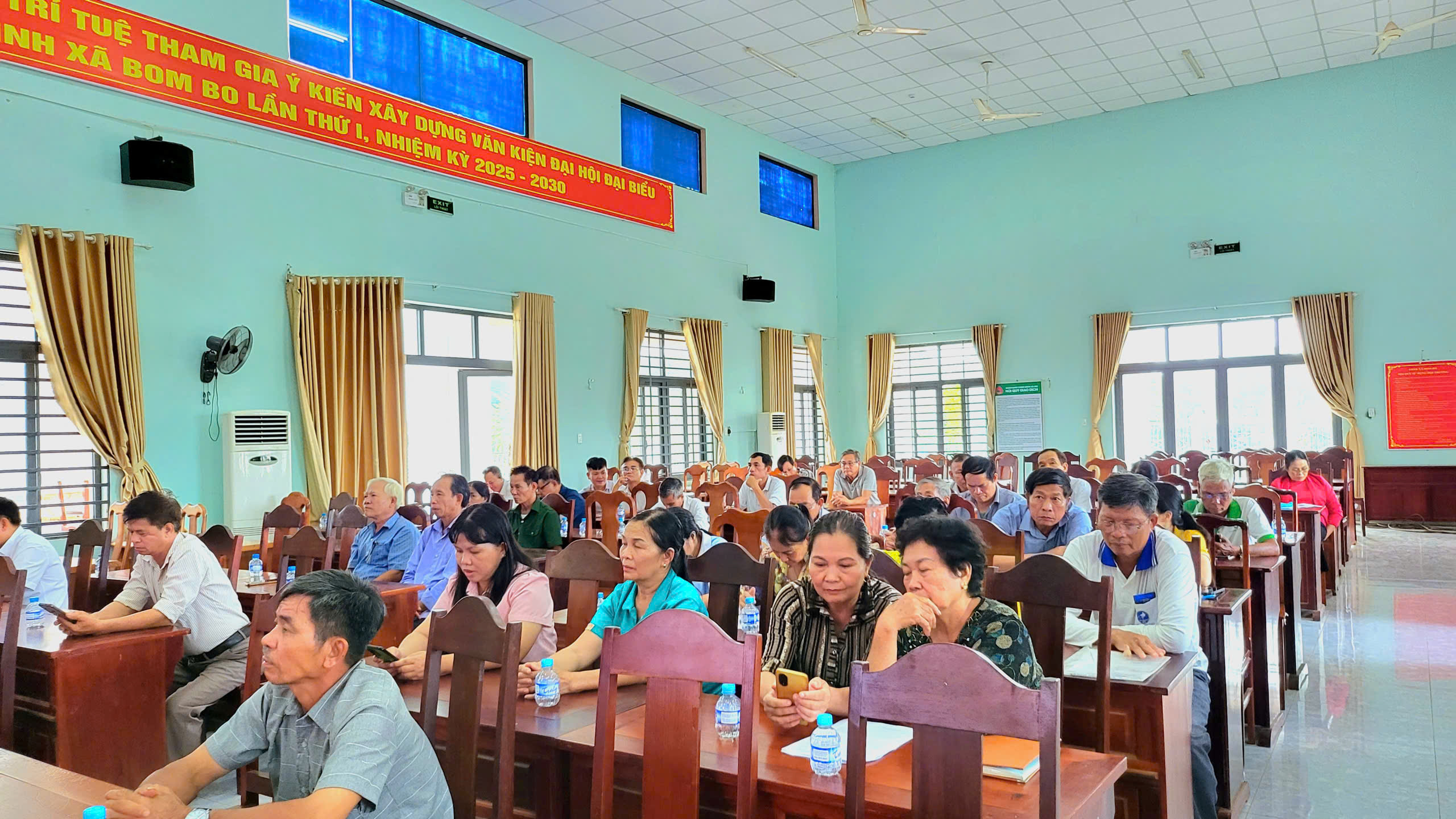 Cử tri xã Bom Bo đã nêu lên nhiều ý kiến, kiến nghị liên quan đến đời sống dân sinh, xây dựng cơ sở hạ tầng nông thôn, công tác quản lý đất đai, môi trường, chế độ chính sách đối với người dân và công tác an sinh xã hội. Các ý kiến thể hiện tinh thần trách nhiệm, thẳng thắn, dân chủ và mang tính xây dựng cao.