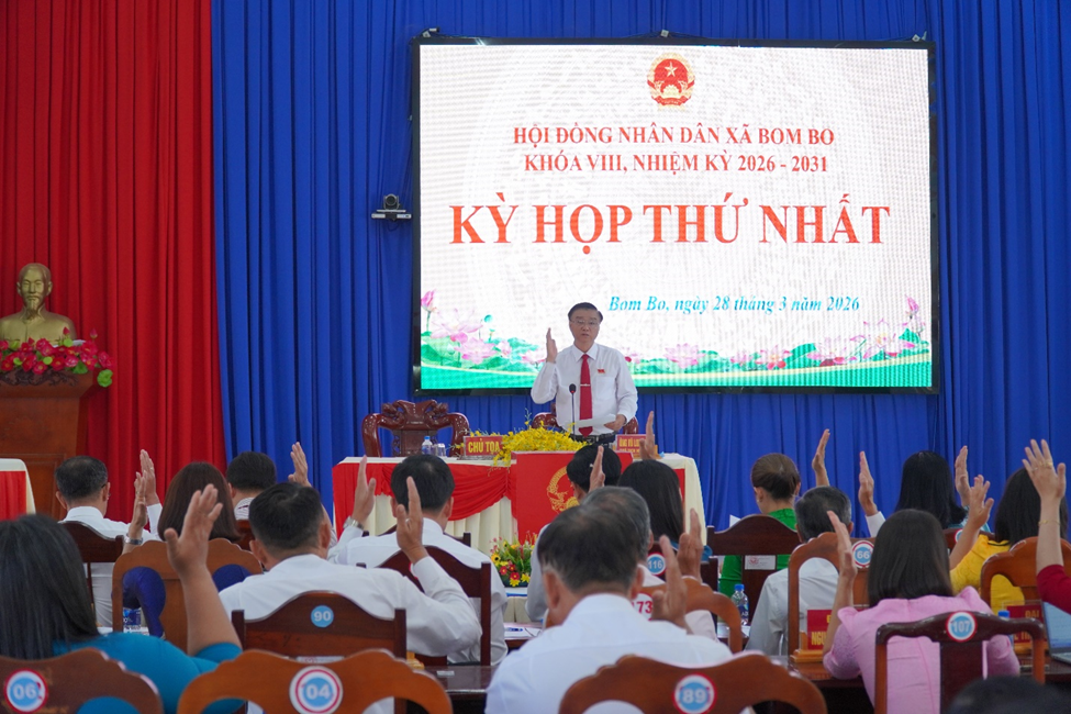 Sáng ngày 28/03/2026, tại hội trường xã Bom Bo, Hội đồng nhân dân (HĐND) xã Bom Bo khóa VIII, nhiệm kỳ 2026 – 2031, đã tổ chức Kỳ họp thứ nhất nhằm xem xét, quyết định các nội dung quan trọng theo quy định.