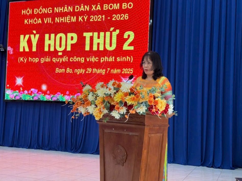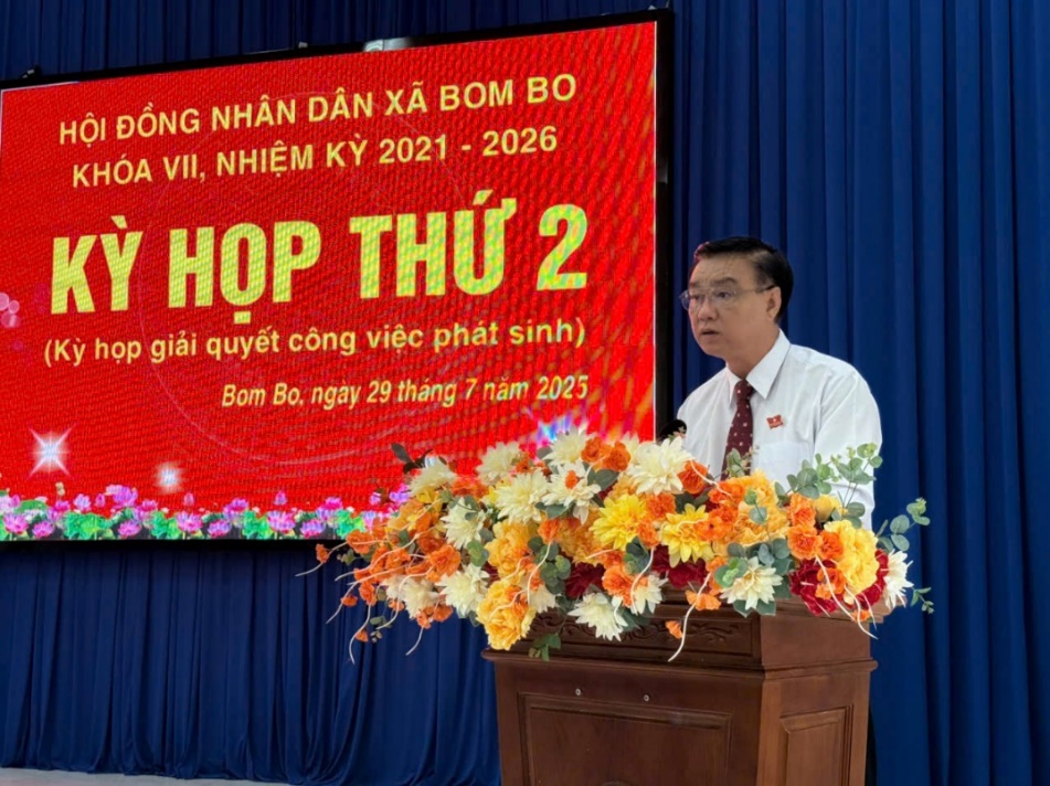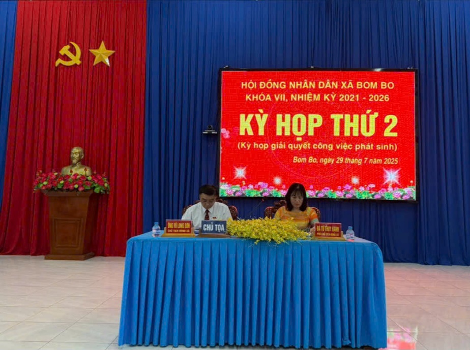 Ngày 29/7, HĐND xã Bom Bo khóa VII, nhiệm kỳ 2021 – 2026 đã tổ chức kỳ họp thứ 2 nhằm giải quyết những công việc phát sinh sau sáp nhập, đánh giá tình hình kinh tế - xã hội, Quốc phòng - An ninh 6 tháng đầu năm, nhiệm vụ giải pháp 6 tháng cuối năm 2025 và thông qua 6 Nghị quyết quan trọng.