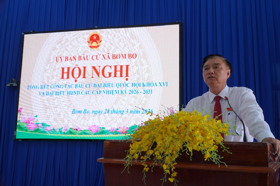 Sáng ngày 28/03/2026, tại hội trường xã Bom Bo, Uỷ ban bầu cử xã Bom Bo tổ chức Hội nghị tổng kết công tác bầu cử đại biểu Hội đồng nhân dân khoá XVI và đại biểu Hội đồng nhân dân các cấp, nhiệm kỳ 2026 – 2031.