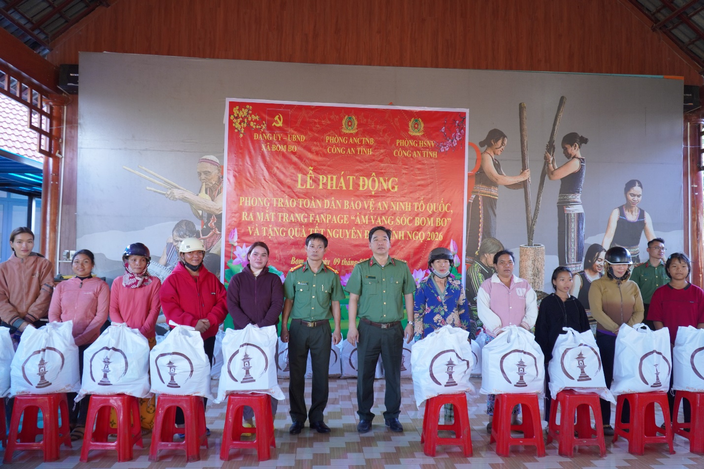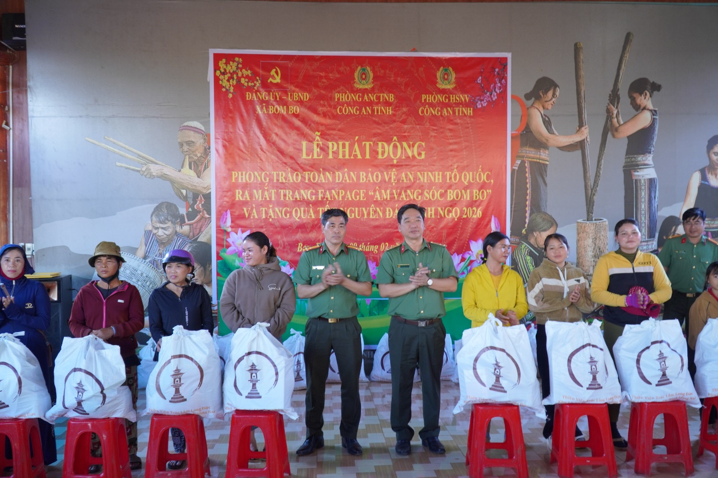 Dịp này, Phòng An ninh Chính trị nội bộ Công an tỉnh Đồng Nai đã trao tặng 100 phần quà cho các gia đình chính sách, đồng bào dân tộc thiểu số có hoàn cảnh khó khăn và thành viên Tổ trật tự cơ sở xã Bom Bo, góp phần động viên tinh thần và tăng cường mối quan hệ gắn bó giữa lực lượng Công an với Nhân dân.