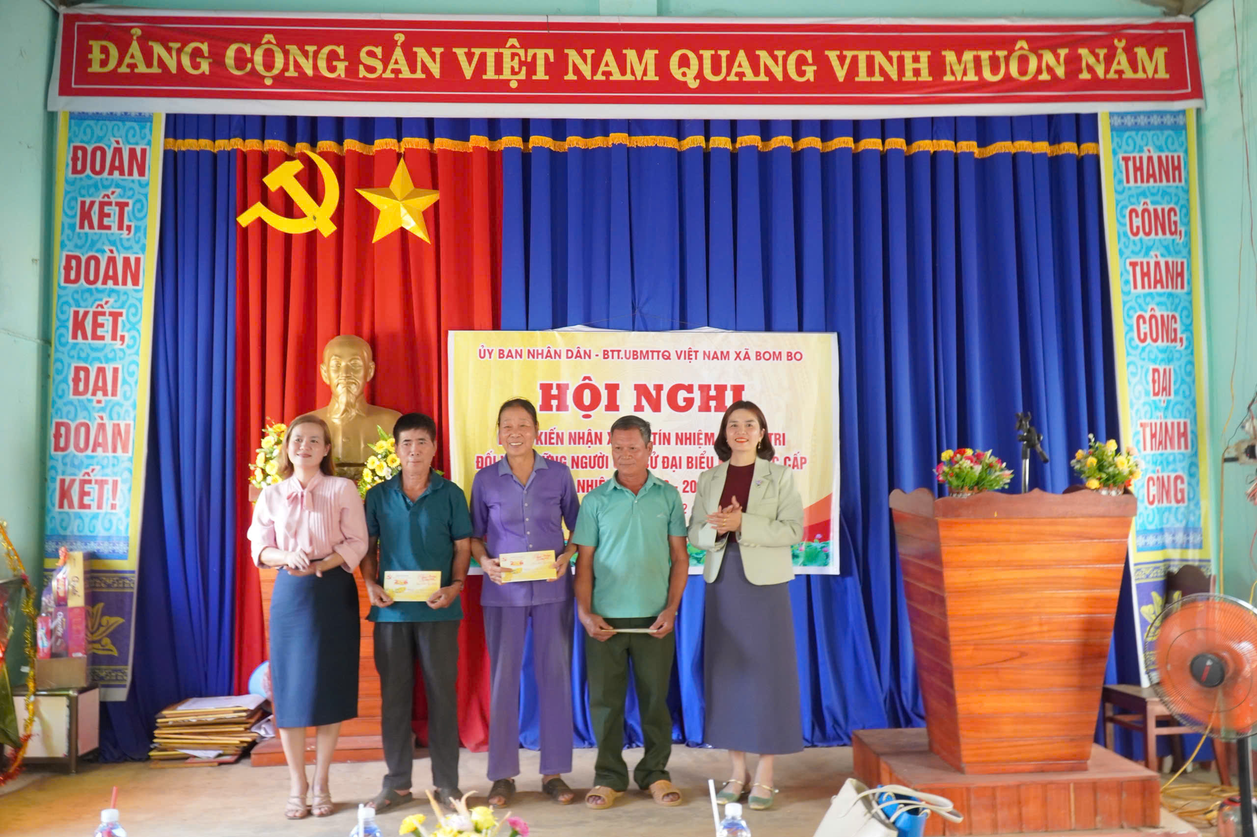 Tại hội nghị, Ban Thường trực Ủy ban MTTQ xã Bom Bo đã thông qua tiêu chuẩn của đại biểu HĐND các cấp; giới thiệu tiểu sử tóm tắt của từng người ứng cử cư trú tại các thôn nêu trên, được các cơ quan, đơn vị, thôn giới thiệu ứng cử Đại biểu HĐND các cấp, nhiệm kỳ 2026-2031.