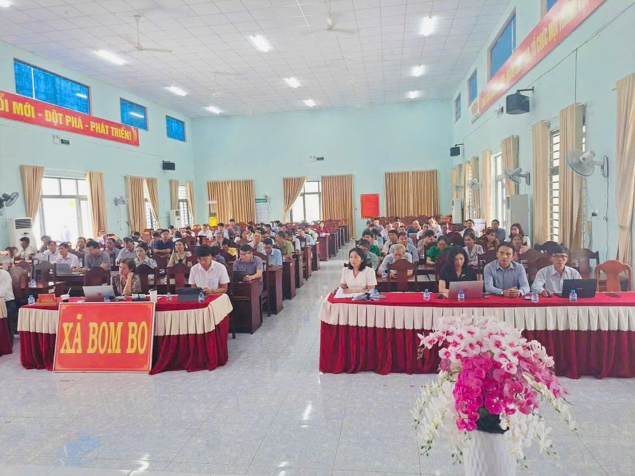 Tại điểm cầu Bom Bo, hội nghị có sự tham dự của Thường trực Đảng ủy xã, lãnh đạo các ban, ngành, Mặt trận Tổ quốc, các tổ chức chính trị - xã hội và đại diện các thôn. Các đại biểu đã tập trung tiếp thu những nội dung quan trọng về:
