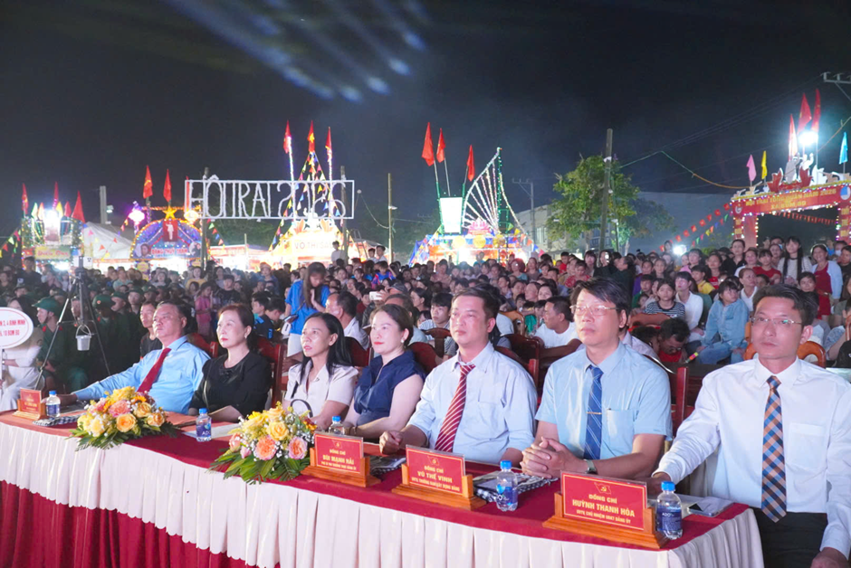 Tham dự đêm hội có đồng chí Vũ Long Sơn – Tỉnh ủy viên, Bí thư Đảng ủy, Chủ tịch HĐND xã; đồng chí Bùi Mạnh Hải – Phó Bí thư Thường trực Đảng ủy xã; đồng chí Nguyễn Văn Phát – Phó Bí thư Đảng ủy, Chủ tịch UBND xã, Chủ tịch Hội đồng Nghĩa vụ quân sự xã; cùng các đồng chí trong Ban Thường vụ Đảng ủy, Thường trực HĐND, UBND, Ủy ban MTTQ Việt Nam xã; lãnh đạo các ban, ngành, đoàn thể; cùng các thanh niên trúng tuyển nghĩa vụ quân sự và nghĩa vụ Công an nhân dân và đông đảo bà con Nhân dân trên địa bàn.