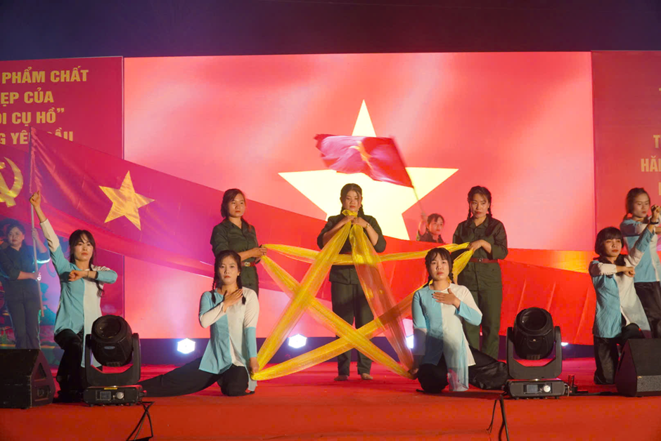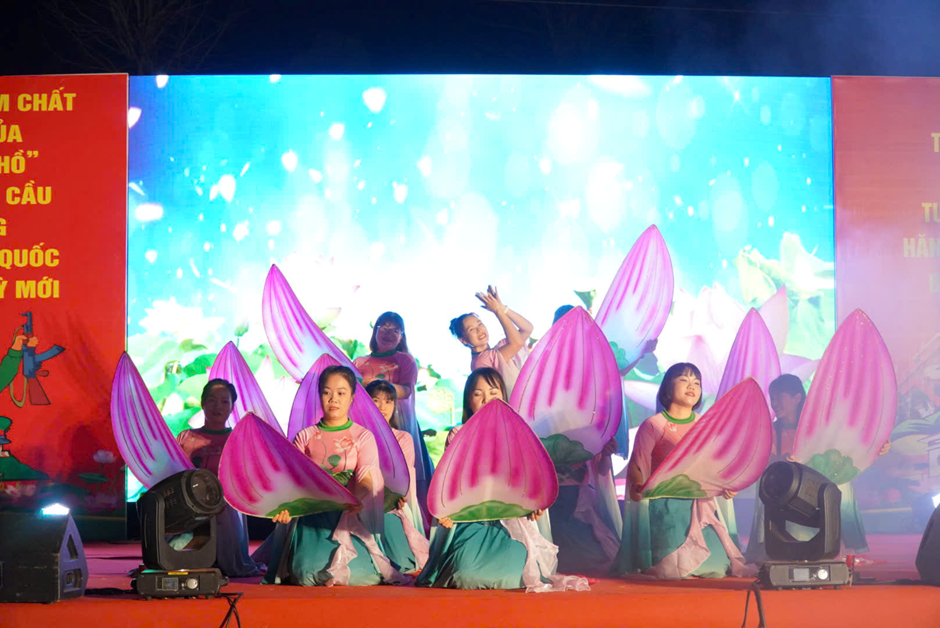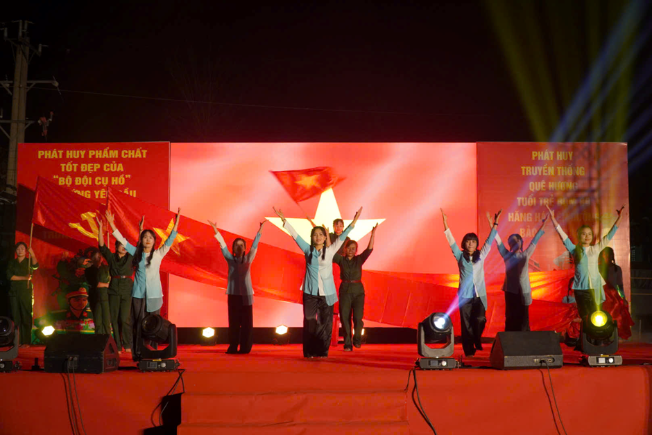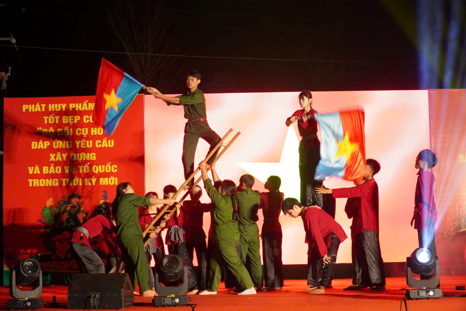 Chương trình còn diễn ra nhiều tiết mục văn nghệ đặc sắc, mang đậm truyền thống quê hương, ca ngợi Đảng, Bác Hồ, tình yêu Tổ quốc và hình ảnh người chiến sĩ Quân đội nhân dân Việt Nam, tạo nên không khí trang trọng nhưng cũng đầy cảm xúc.