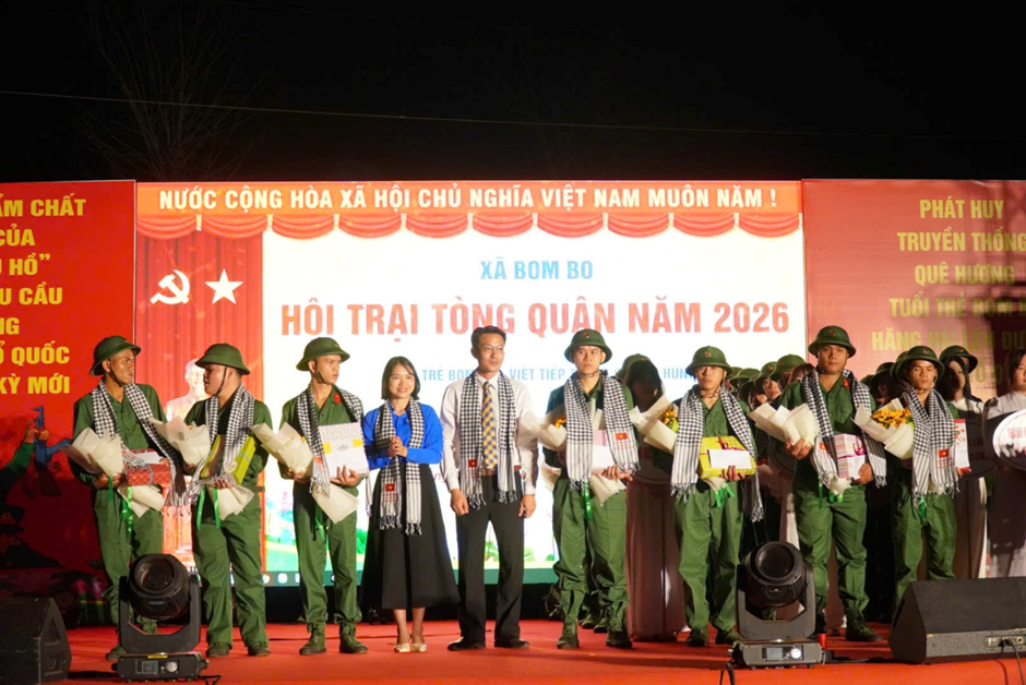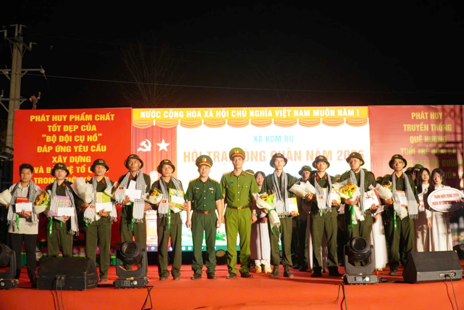 Tối ngày 03/3/2026, xã Bom Bo tổ chức Chương trình “Đêm hội tòng quân – Tuyên dương thanh niên lên đường bảo vệ Tổ quốc” năm 2026 với chủ đề “Tuổi trẻ Bom Bo viết tiếp trang sử hào hùng”.