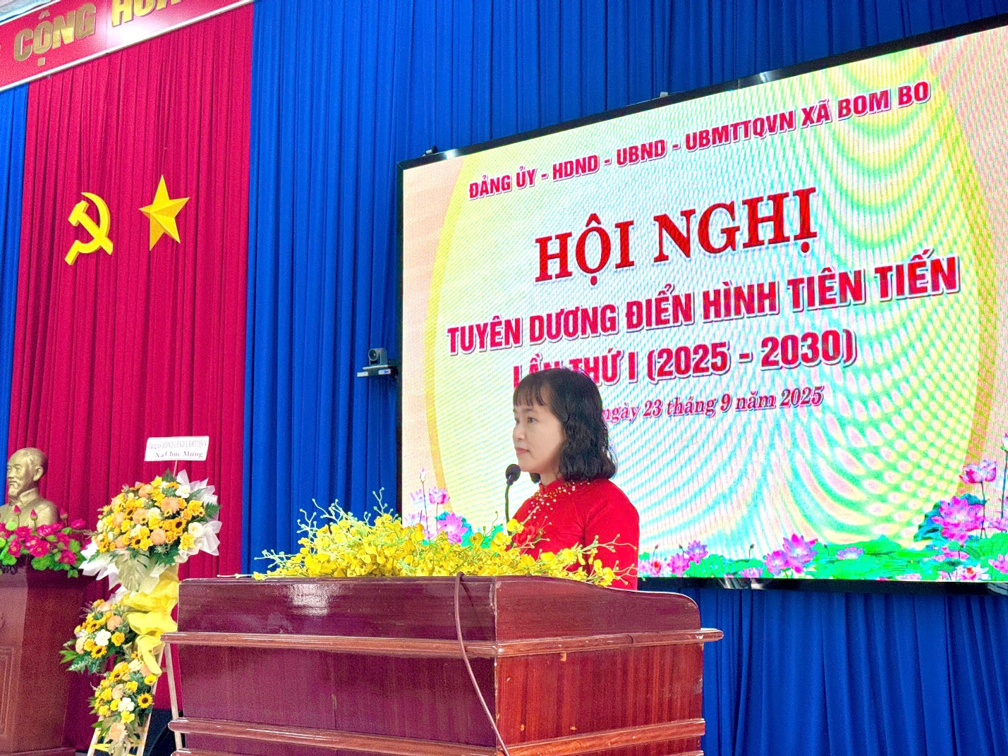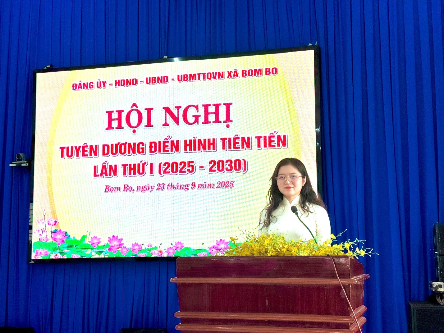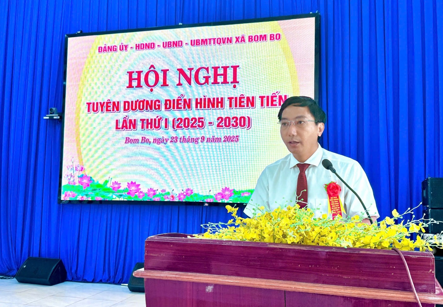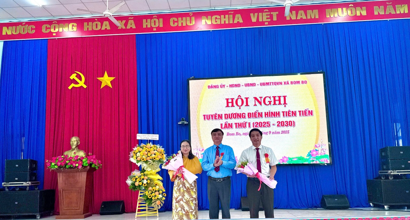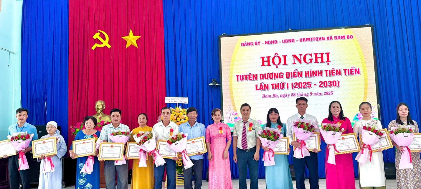 Ngày 23 tháng 9 năm 2025, Đảng uỷ, Hội đồng nhân dân, Ủy ban nhân dân, Uỷ ban mặt trận tổ quốc Việt Nam xã Bom Bo đã long trọng tổ chức Hội nghị tuyên dương điển hình tiên tiến lần thứ nhất giai đoạn 2025-2030. Dự và chỉ đạo hội nghị có Đồng chí Vũ Long Sơn – Tỉnh uỷ viên – Bí thư Đảng uỷ - Chủ tịch Hội đồng Nhân dân xã; Đồng chí Bùi Mạnh Hải – Phó bí thư thường trực Đảng uỷ; Đồng chí Nguyễn Văn Phát – Phó bí thư, Chủ tịch UBND xã, Chủ tịch Hội đồng thi đua khen thưởng xã.