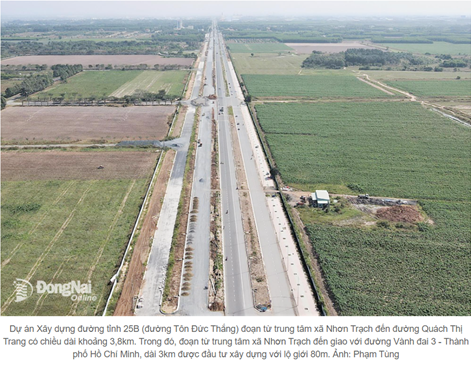 (ĐN) - Theo dự kiến, tuyến đường tỉnh 25B, đoạn từ trung tâm xã Nhơn Trạch đến đường Quách Thị Trang, xã Nhơn Trạch, tỉnh Đồng Nai sẽ thông xe kỹ thuật vào cuối tháng 12-2025 và hoàn thành xây dựng trong tháng 1-2026.