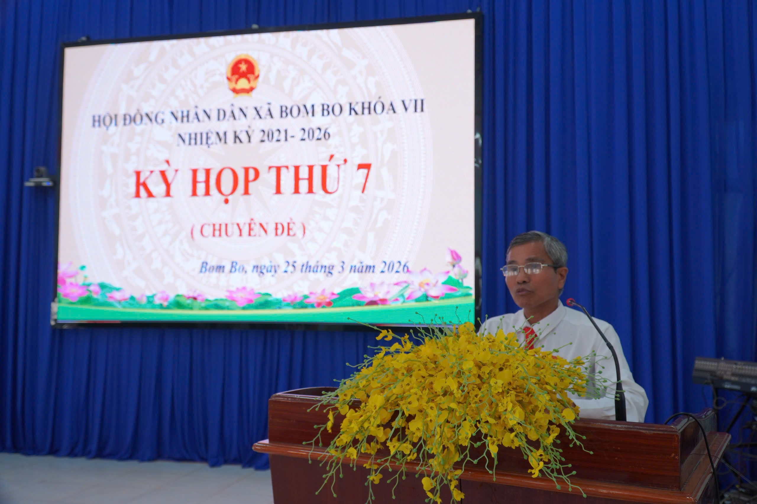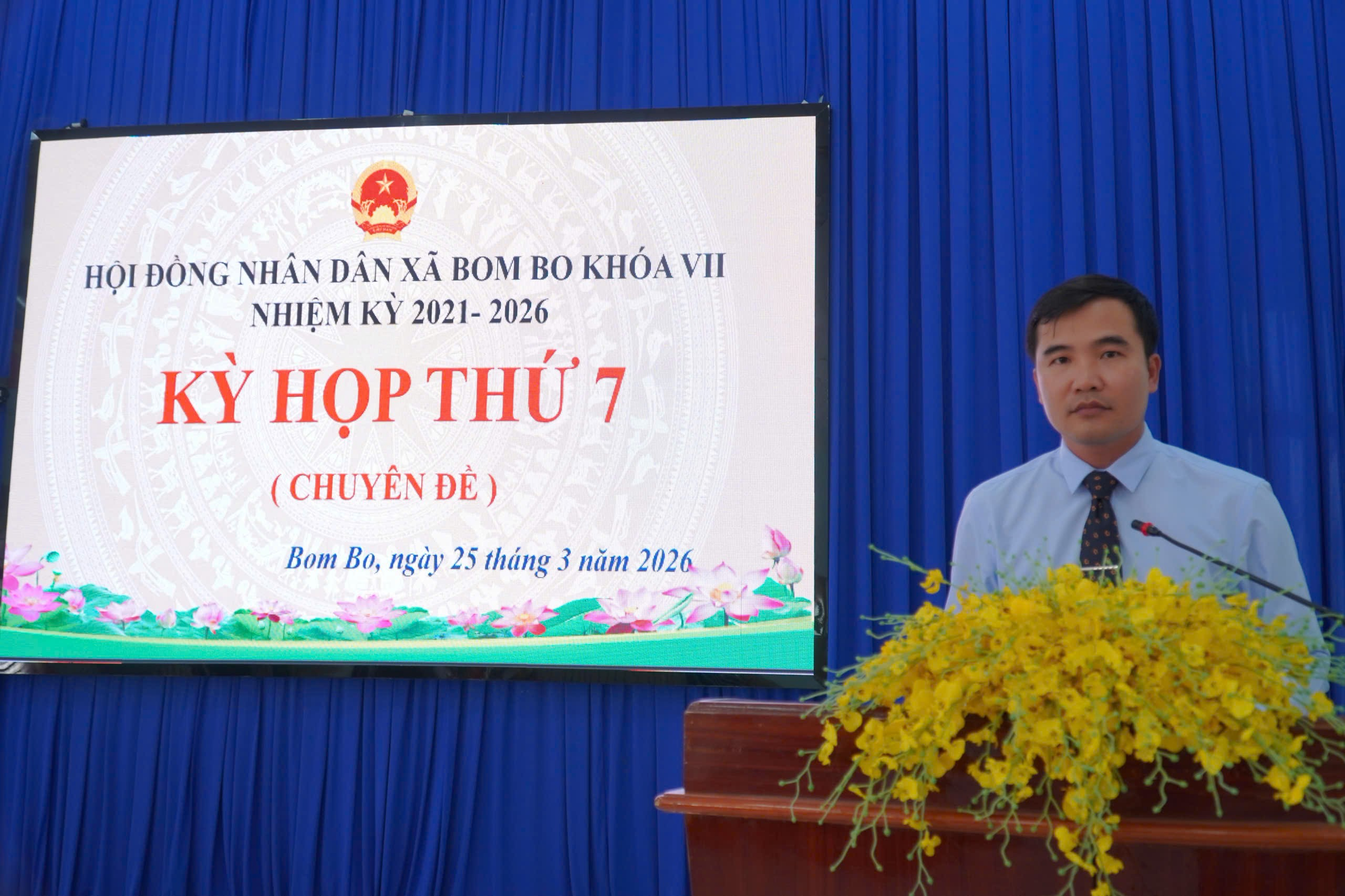 <div style="text-align: justify;"><span style="font-size:18px;"><span style="font-family:Times New Roman,Times,serif;"><span style="background:rgb(255, 255, 255);"><span style="line-height:107%"><span style="color:rgb(8, 8, 9);">&nbsp; &nbsp;Ngày 25/3/2026, tại hội trường xã Bom Bo, Hội đồng Nhân dân xã đã tổ chức Kỳ họp thứ 7 – kỳ họp chuyên đề Hội Đồng Nhân Dân xã Bom Bo khóa VII, nhiệm kỳ 2021-2026.</span></span></span><br />
