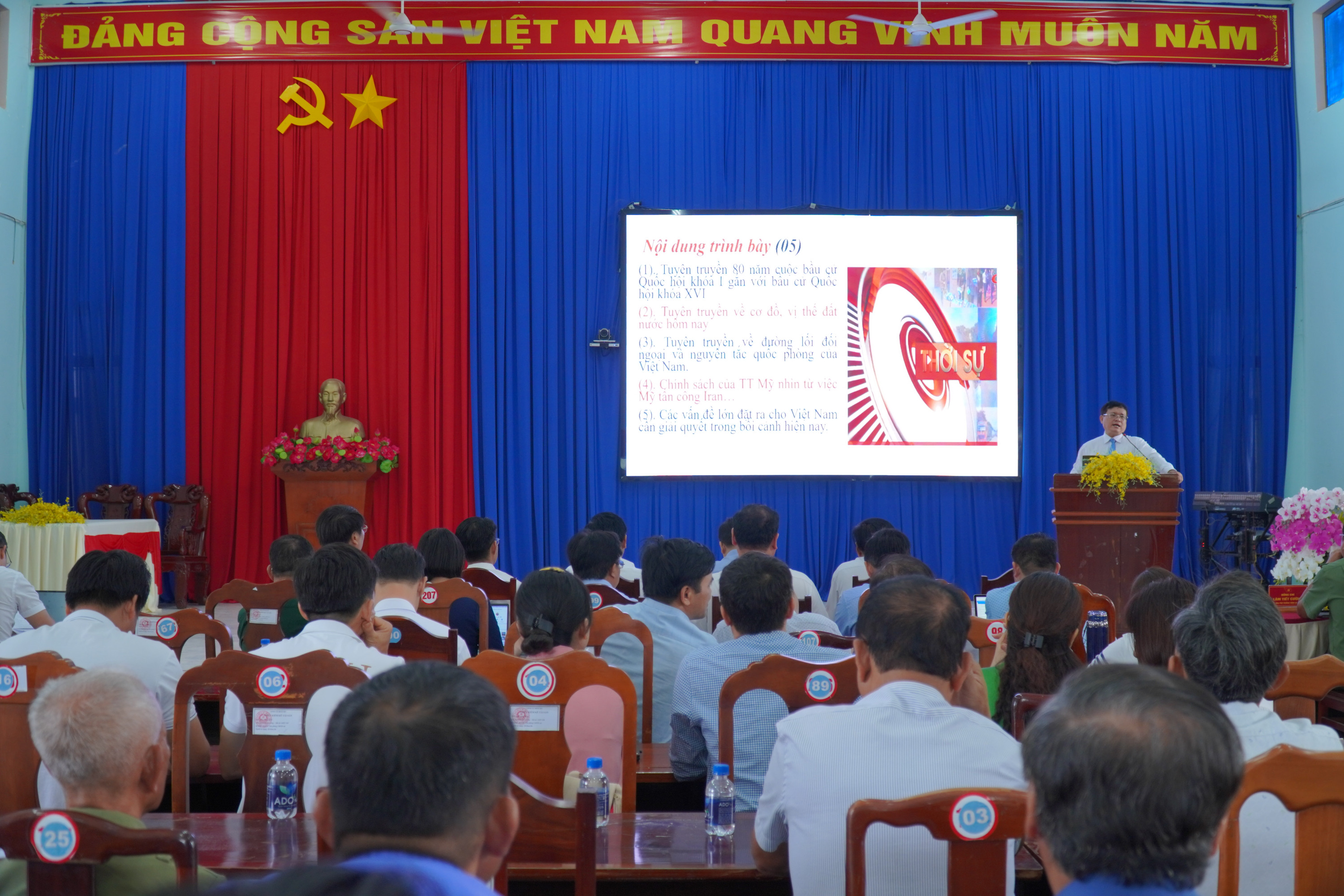 <span style="font-size:18px;"><span style="font-family:Times New Roman,Times,serif;"><span style="line-height:normal">&nbsp; &nbsp;Hội&nbsp;</span><span style="line-height:normal">nghị được nghe Tiến sĩ Vũ Trung Kiên – Phó Trưởng khoa Xây dựng Đảng, Học viện Chính trị khu vực II, Báo cáo viên Trung ương trực tiếp truyền đạt các nội dung thông tin thời sự quan trọng trong quý I năm 2026. Các nội dung về tình hình thời sự trong nước và quốc tế, những vấn đề nổi bật về kinh tế - xã hội, quốc phòng - an ninh, công tác xây dựng Đảng và định hướng tuyên truyền trong thời gian tới.</span></span></span>