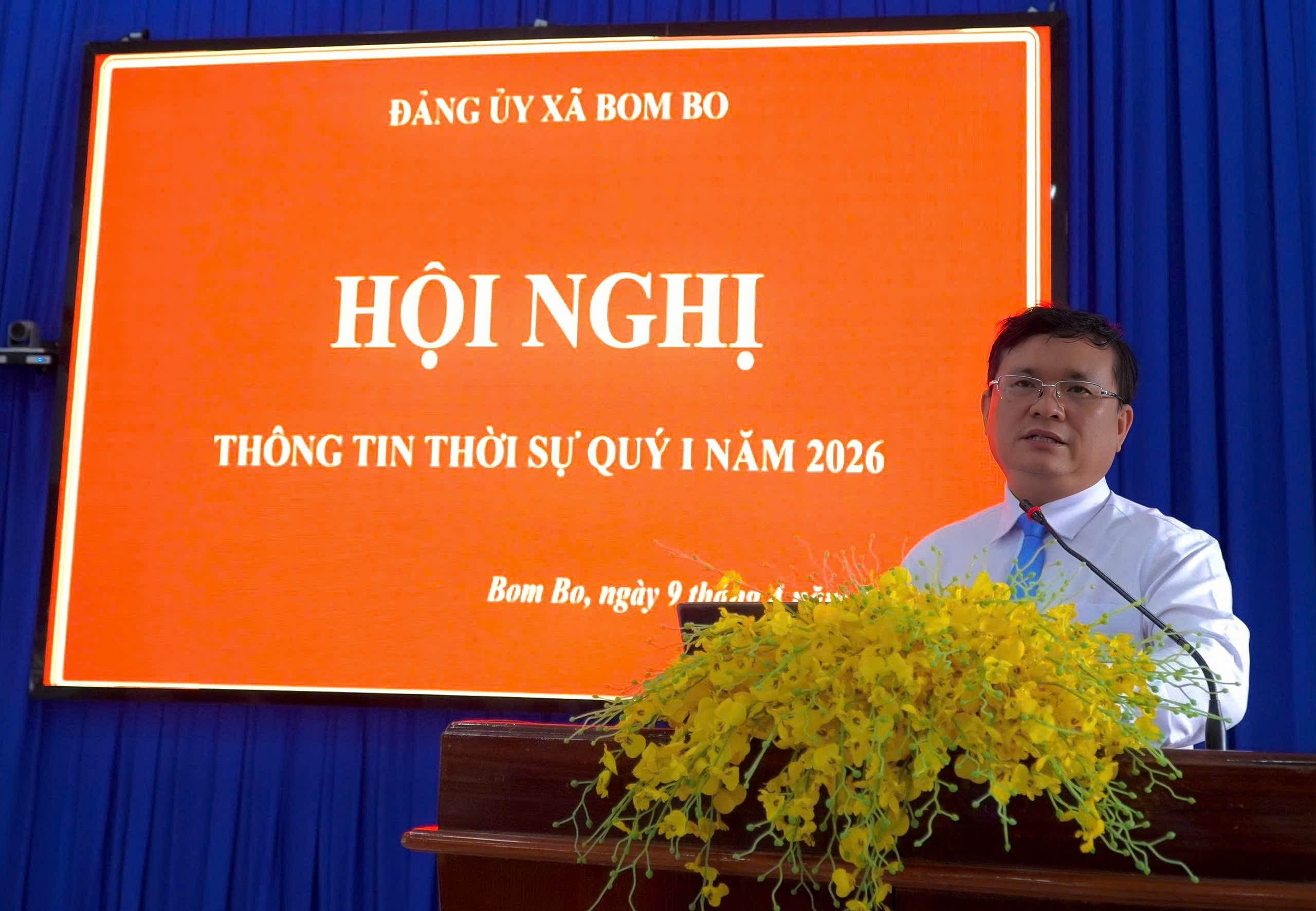 <div style="text-align: justify;"><span style="font-size:18px;"><span style="font-family:Times New Roman,Times,serif;"><span style="line-height:normal">&nbsp; &nbsp;Sáng ngày 09/4/2026, tại xã Bom Bo, Đảng ủy xã Bom<span lang="VI"> Bo </span>đã tổ chức Hội nghị thông tin thời sự quý I năm 2026 dành cho đội ngũ cán bộ, đảng viên trên địa bàn.</span><br />