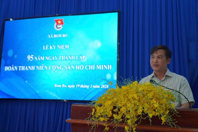 <div style="text-align: justify;"><span style="font-size:12pt"><span style="line-height:115%"><span style="font-family:Calibri,sans-serif"><span style="font-size:13.0pt"><span style="line-height:115%"><span style="font-family:&#039;Times New Roman&#039;,serif">&nbsp; &nbsp;Chiều ngày 19/3/2026, tại hội trường xã Bom Bo, Ban Chấp hành Đoàn TNCS Hồ Chí Minh xã Bom Bo đã tổ chức Lễ kỷ niệm 95 năm Ngày thành lập Đoàn TNCS Hồ Chí Minh (26/3/1931 – 26/3/2026) </span></span></span></span></span></span>