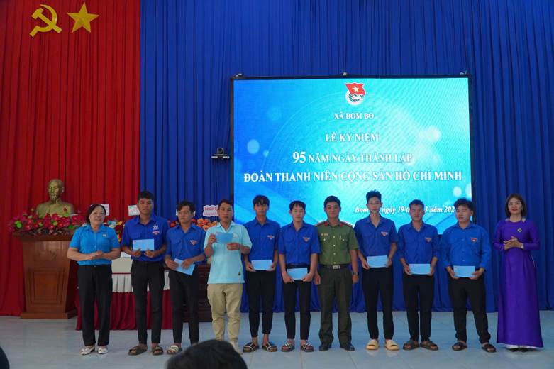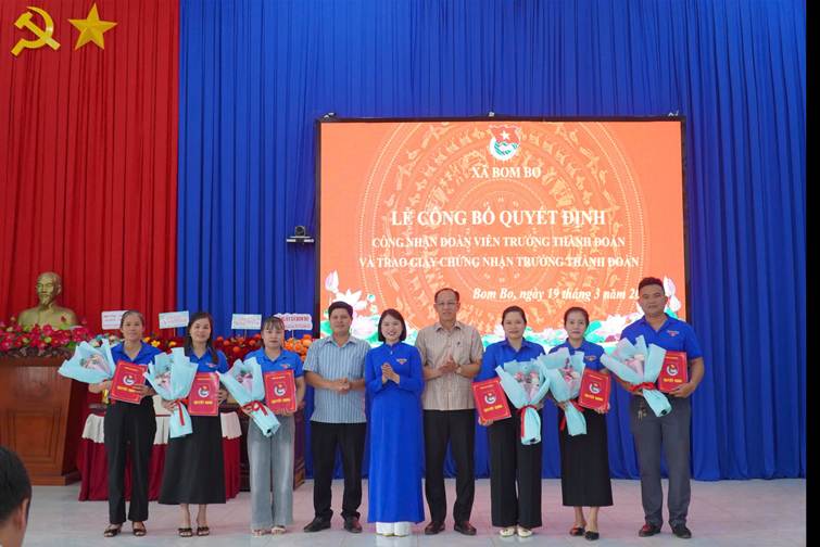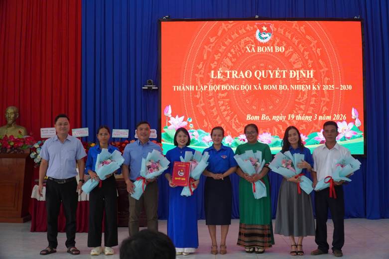 <span style="font-size:12pt"><span style="line-height:115%"><span style="font-family:Calibri,sans-serif"><span style="font-size:13.0pt"><span style="line-height:115%"><span style="font-family:&#039;Times New Roman&#039;,serif">&nbsp; &nbsp;Tại buổi lễ, Ban Thường vụ Đoàn xã đã công bố quyết định công nhận đoàn viên trưởng thành; thành lập Hội đồng Đội xã nhiệm kỳ 2025–2030; ra mắt Câu lạc bộ “Lý luận trẻ xã Bom Bo”; Tổ chức tri ân các đồng chí Bí thư Đoàn xã qua các thời kỳ. Đồng thời, khen thưởng nhiều tập thể, cá nhân tiêu biểu; tặng 10 phần quà cho đoàn viên có hoàn cảnh khó khăn.</span></span></span></span></span></span>