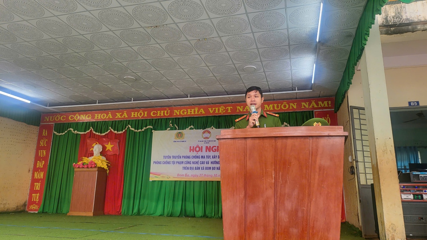 Phát biểu khai mạc hội nghị, bà Nguyễn Thị Hồng Thắm nhấn mạnh: Trong bối cảnh công nghệ phát triển mạnh mẽ, bên cạnh những tiện ích mà chuyển đổi số mang lại, các loại tội phạm công nghệ cao, bắt cóc online và ma túy đang ngày càng tinh vi, phức tạp. Chính vì vậy, việc tuyên truyền, trang bị kiến thức cho học sinh là nhiệm vụ quan trọng, góp phần xây dựng xã Bom Bo an toàn, văn minh, không ma túy.