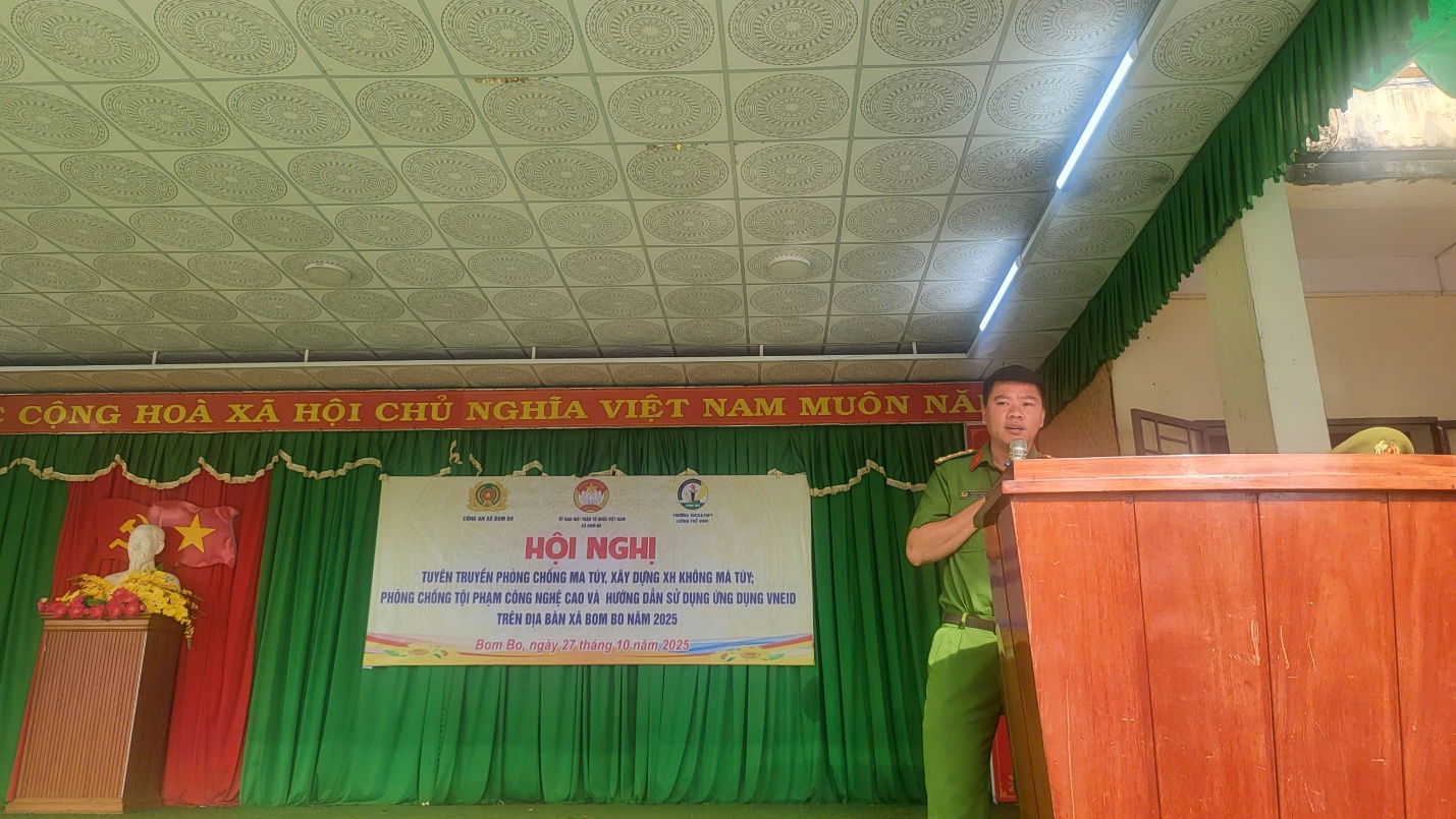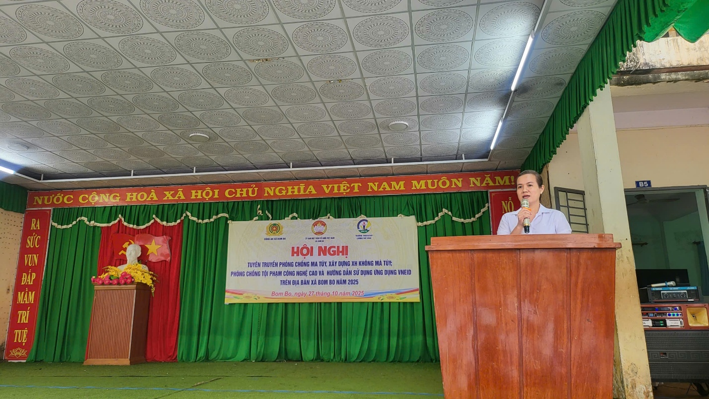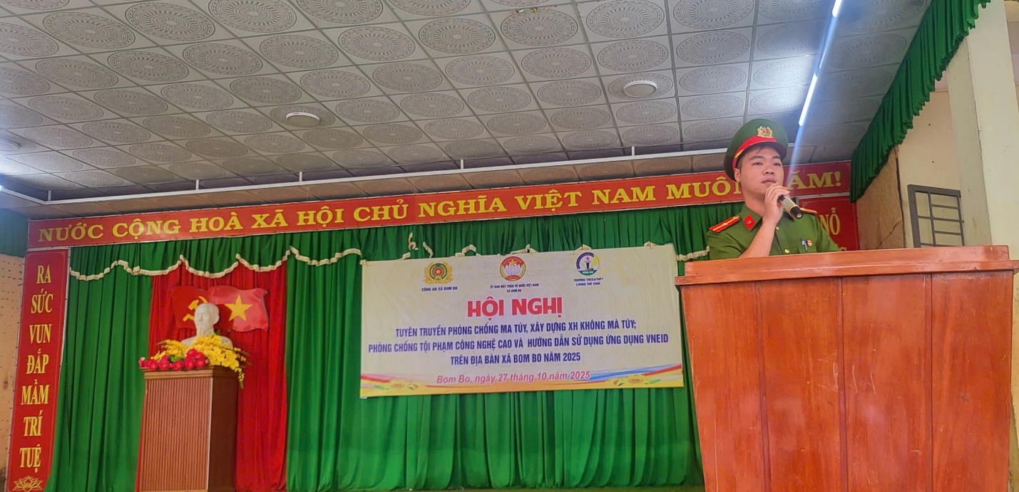 Sáng ngày 27/10/2025, tại Trường THCS – THPT Lương Thế Vinh, xã Bom Bo, đã diễn ra Hội nghị tuyên truyền hướng dẫn sử dụng VNeID; phòng, chống tội phạm lừa đảo công nghệ cao, bắt cóc online thanh thiếu niên; tuyên truyền phòng, chống ma túy và xây dựng xã không ma túy.
