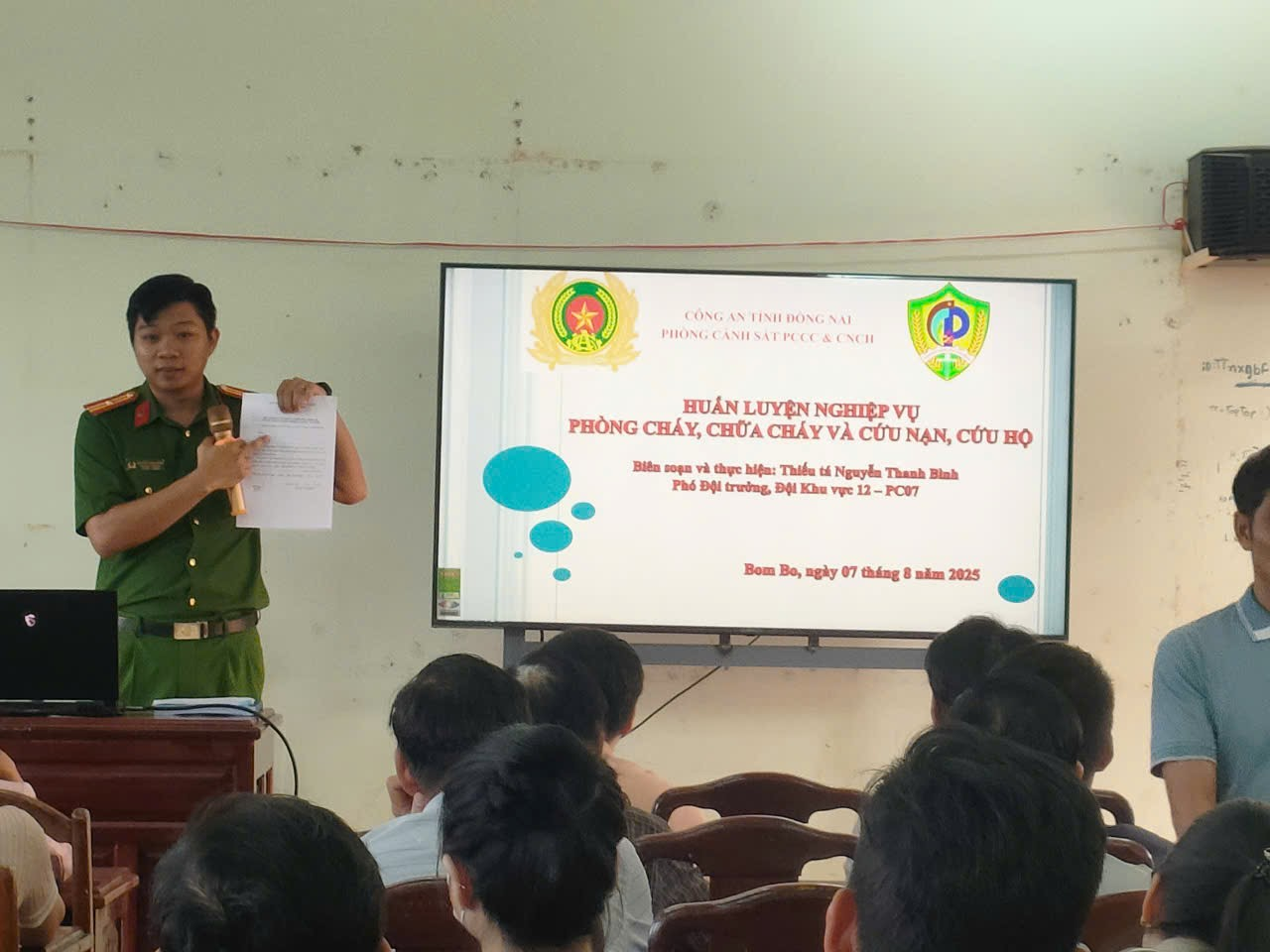 Trong ngày 07/8/2025, Phòng Cảnh sát PCCC và CNCH – Công an tỉnh Đồng Nai đã tổ chức lớp huấn luyện nghiệp vụ phòng cháy, chữa cháy và cứu nạn cứu hộ cho đông đảo người dân, tổ chức, doanh nghiệp, hộ kinh doanh, cá nhân có nhu cầu trên địa bàn xã Bom Bo.