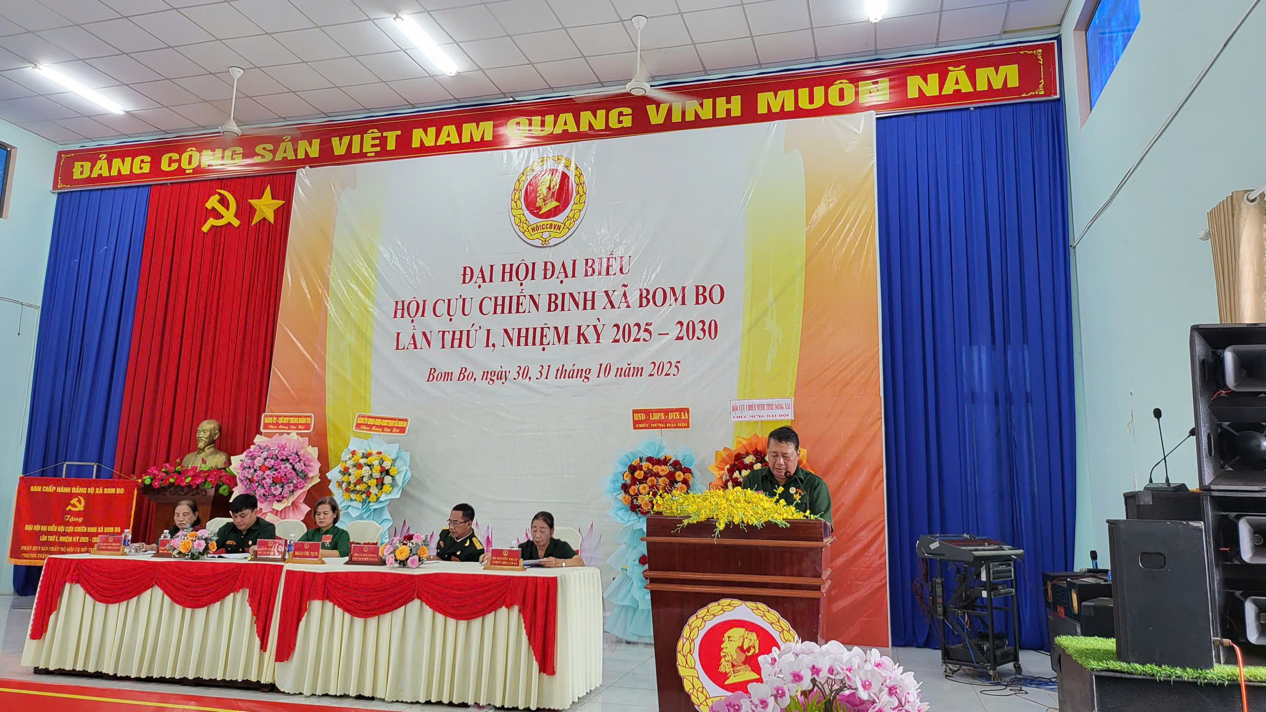 Cựu chiến binh Lê Văn Cảnh báo cáo điển hình tại Đại hội Đại biểu Hội CCB xã Bom Bo lần thứ I, nhiệm kỳ 2025- 2030.