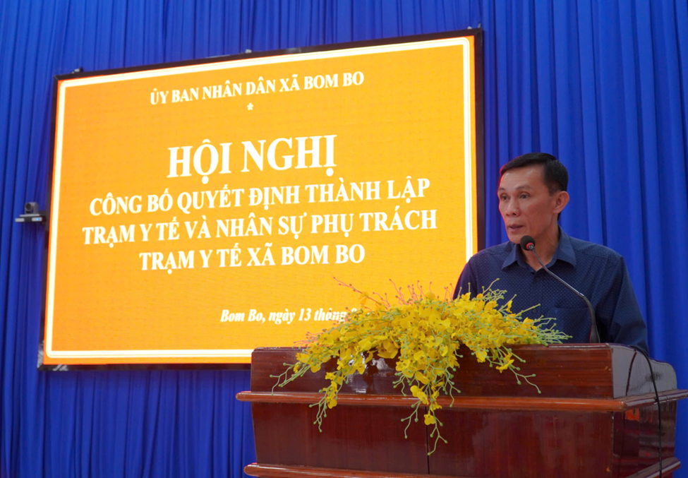 Chiều ngày 13/1/2026, tại Hội trường xã Bom Bo, UBND xã đã tổ chức Hội nghị công bố Quyết định thành lập Trạm Y tế xã và nhân sự phụ trách trạm y tế xã Bom Bo.