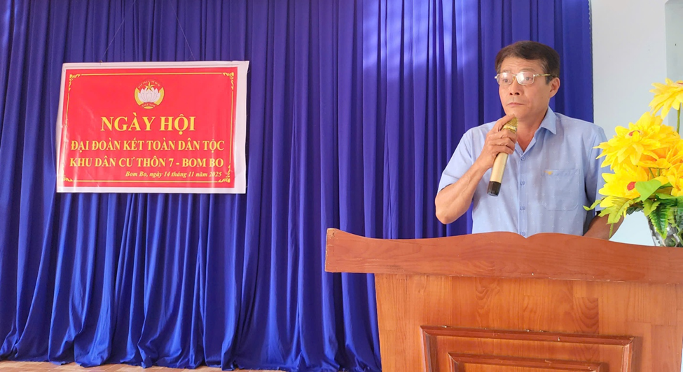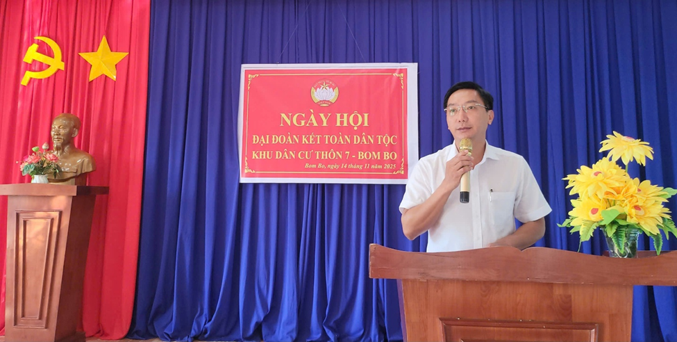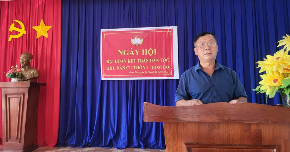 Tại thôn 7, Bom Bo, xã Bom Bo, Ngày hội Đại đoàn kết toàn dân tộc được tổ chức với sự tham dự của ông Nguyễn Văn Phát – Phó Bí thư Đảng uỷ, Chủ tịch UBND xã. Các đại biểu đã ôn lại lịch sử 95 năm vẻ vang của Mặt trận Dân tộc thống nhất Việt Nam - Mặt trận Tổ quốc Việt Nam; đánh giá kết quả thực hiện các cuộc vận động, phong trào thi đua yêu nước và phát động các phong trào thi đua trên địa bàn.