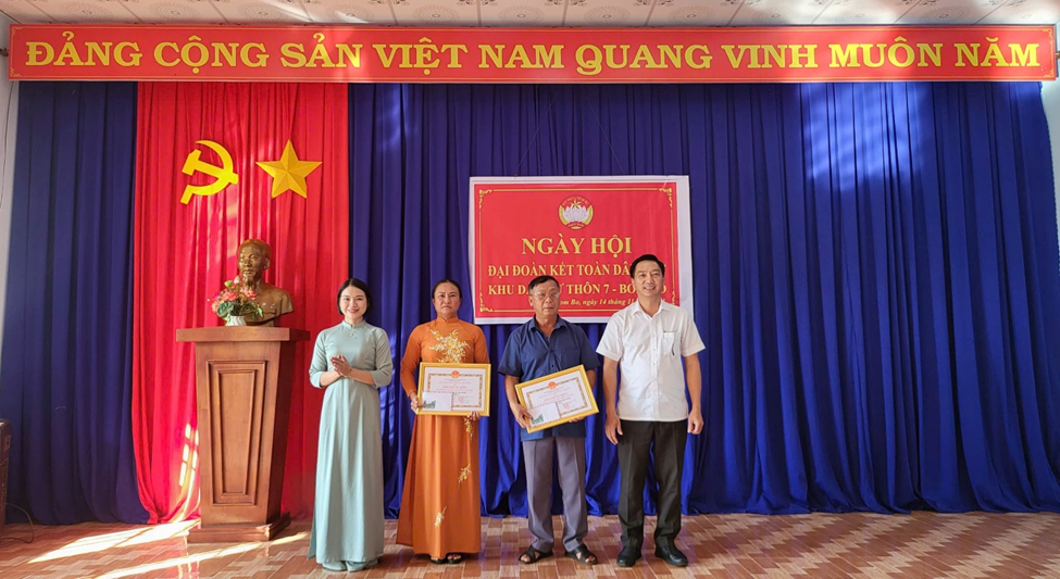 Ông Nguyễn Văn Phát – Phó Bí thư Đảng uỷ, Chủ tịch UBND xã đề nghị thôn 7 tiếp tục thực hiện các giải pháp xây dựng khu dân cư sạch - xanh - thân thiện môi trường gắn với các hoạt động thi đua chào mừng Đại hội đại biểu toàn quốc lầ thứ XIV của Đảng. Đồng thời tập trung vào công tác tuyên truyền, triển khai sâu rộng Cuộc vận động “Toàn dân đoàn kết xây dựng nông thôn mới, đô thị văn minh”, chung tay thực hiện công tác an sinh xã hội, chăm lo cho người có hoàn cảnh khó khăn. Tại ngày hội, UBND xã đã biểu dương, khen thưởng “Gia đình văn hóa tiêu biểu” của thôn.