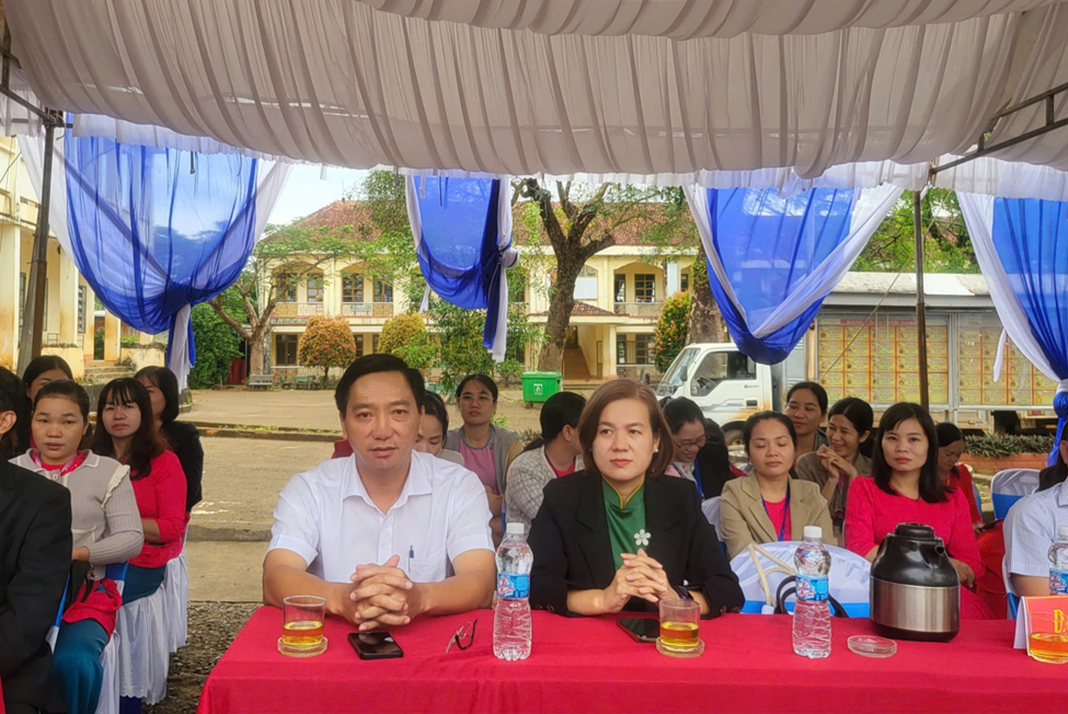Dự buổi lễ có Ông Nguyễn Văn Phát – Phó Bí thư Đảng ủy, Chủ tịch UBND xã Bom Bo; Bà Nguyễn Thị Hồng Thắm – Đảng ủy viên, Chủ tịch Ủy ban MTTQ Việt Nam xã; Thầy Trần Quang Cường – Bí thư Đảng bộ, Hiệu trưởng nhà trường, cùng toàn thể cán bộ, giáo viên, nhân viên và học sinh.