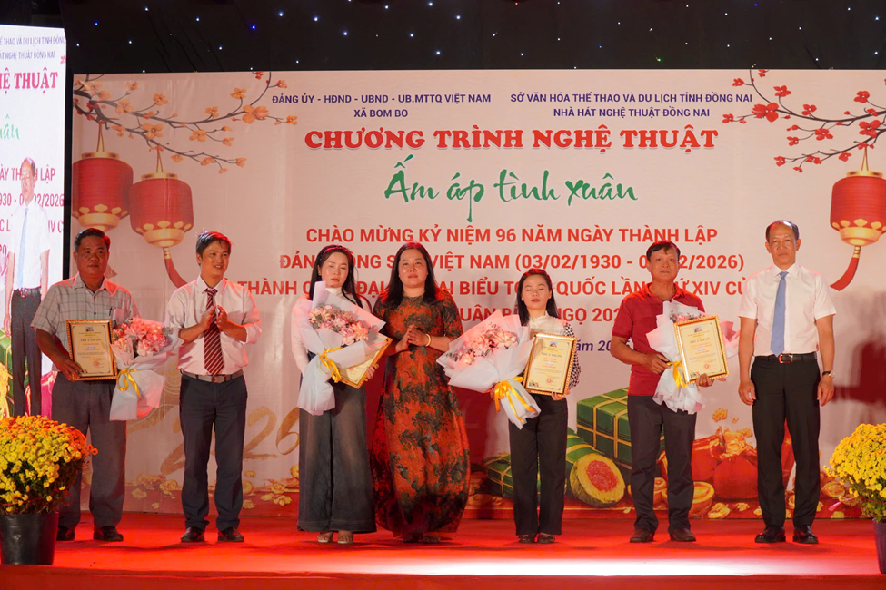 Tối ngày 02/02/2026, Đảng ủy – HĐND – UBND – Ủy ban MTTQ Việt Nam xã Bom Bo đã long trọng tổ chức chương trình văn nghệ mừng Đảng – mừng Xuân Bính Ngọ 2026 với chủ đề “Ấm áp tình xuân”.
