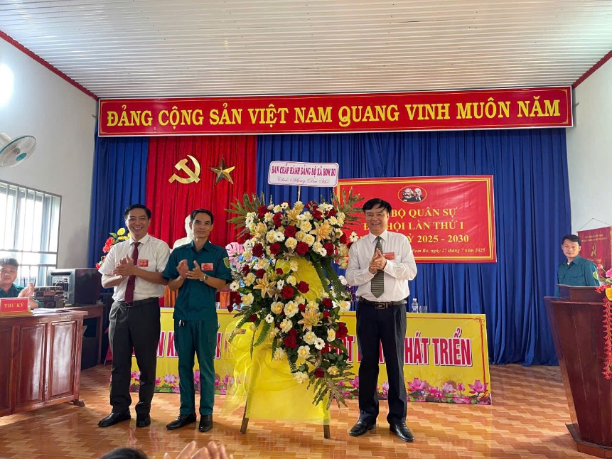 Sáng ngày 27/7, Chi bộ Quân sự xã Bom Bo tổ chức Đại hội lần thứ I, nhiệm kỳ 2025 – 2030. Đây là kỳ đại hội đầu tiên kể từ khi Chi bộ được sáp nhập từ 2 xã Bom Bo và xã Bình Minh, đánh dấu bước phát triển quan trọng trong công tác lãnh đạo, chỉ đạo nhiệm vụ quốc phòng – quân sự địa phương.
